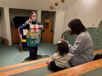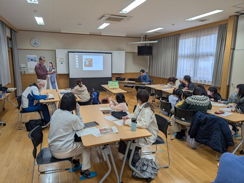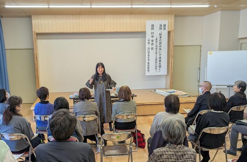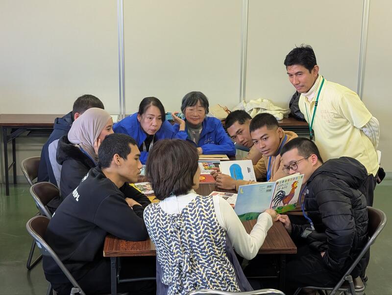 | 1つは、えほんでまなぶ日本。市内在住の外国人を対象に、ボランティアグループ(日本語教室いまり)の協力を受け、絵本を通して日本の言葉や文化を学んでもらうというものです。相互理解と交流が和やかに進みました。 |