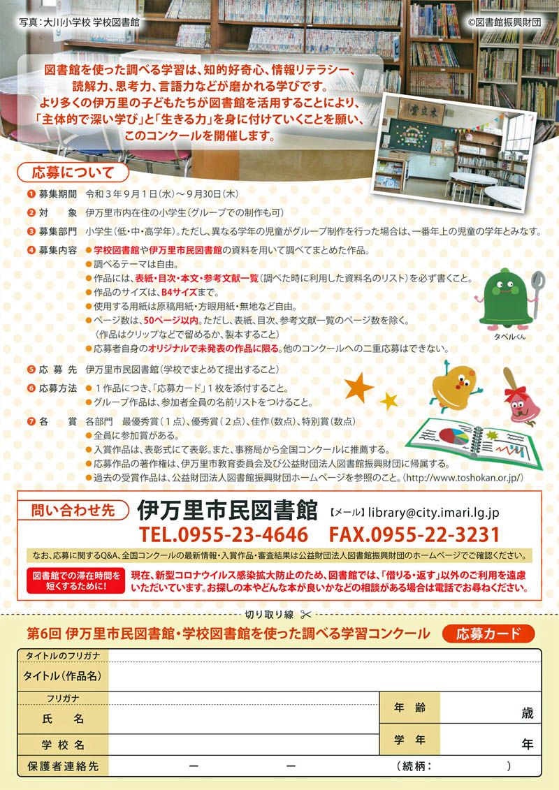 5 応募先 伊万里市民図書館 (学校でまとめて提出すること)